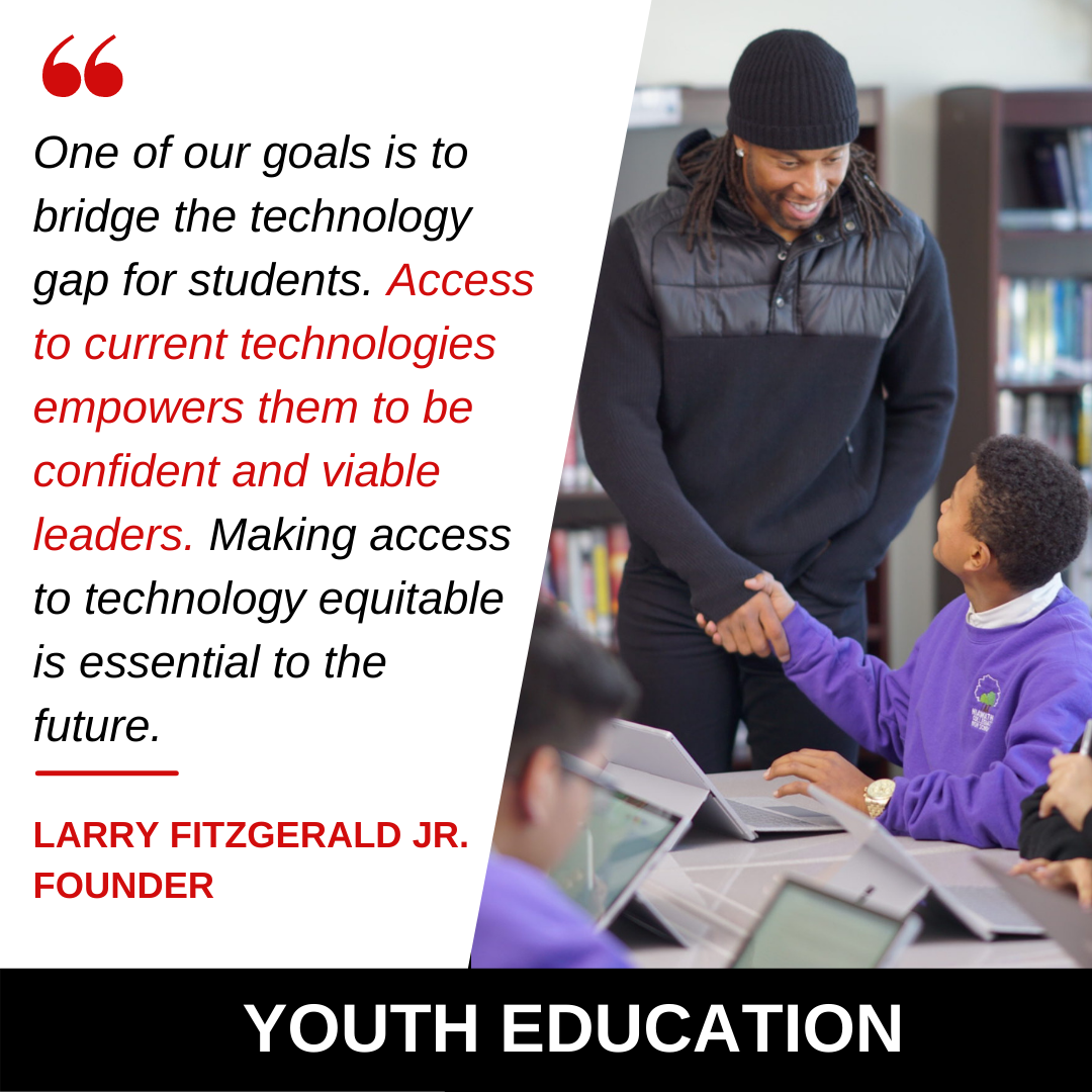 The Larry Fitzgerald Foundation is dedicated to providing resources for Youth Education and Breast Cancer Awareness that create equitable access and enable communities to thrive.