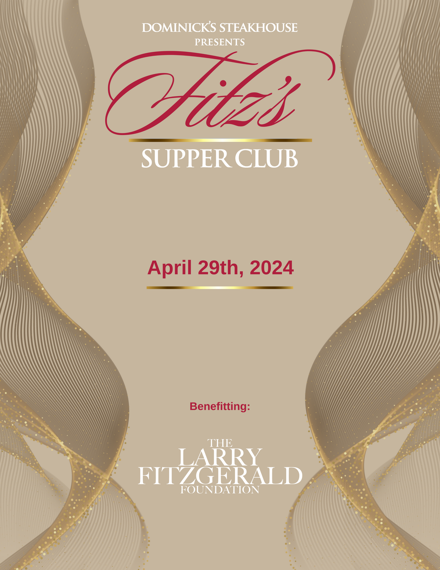 We are delighted to announce Fitz’s Supper Club, one of Arizona's most anticipated social and charitable gatherings is back for its 14th year. Our biggest fundraiser of the year hosted at Dominick's Steakhouse, will be an evening of philanthropy and culinary excellence. With a menu featuring a selection of Fitzgerald’s favorite dishes prepared by Chef Antonio Benevidez, guests are surely in for a sophisticated presentation. Complimented with bespoke cocktails and an evening of entertainment, guests will have the opportunity to bid on exclusive items in our highly-anticipated auctions, hosted by the captivating Auctiontainer, Letitia Frye. As we unite to support the mission of the foundation, we are honored to have those committed to community join us on a journey of impact all in the name of advancing youth education and breast cancer awareness.